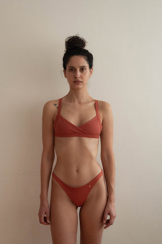 Our model is wearing a size 1 bikini top and size 1 bikini bottoms. Check out our size guide to find your size or let us help you find the perfect fit by emailing us at hello@swimsor.com